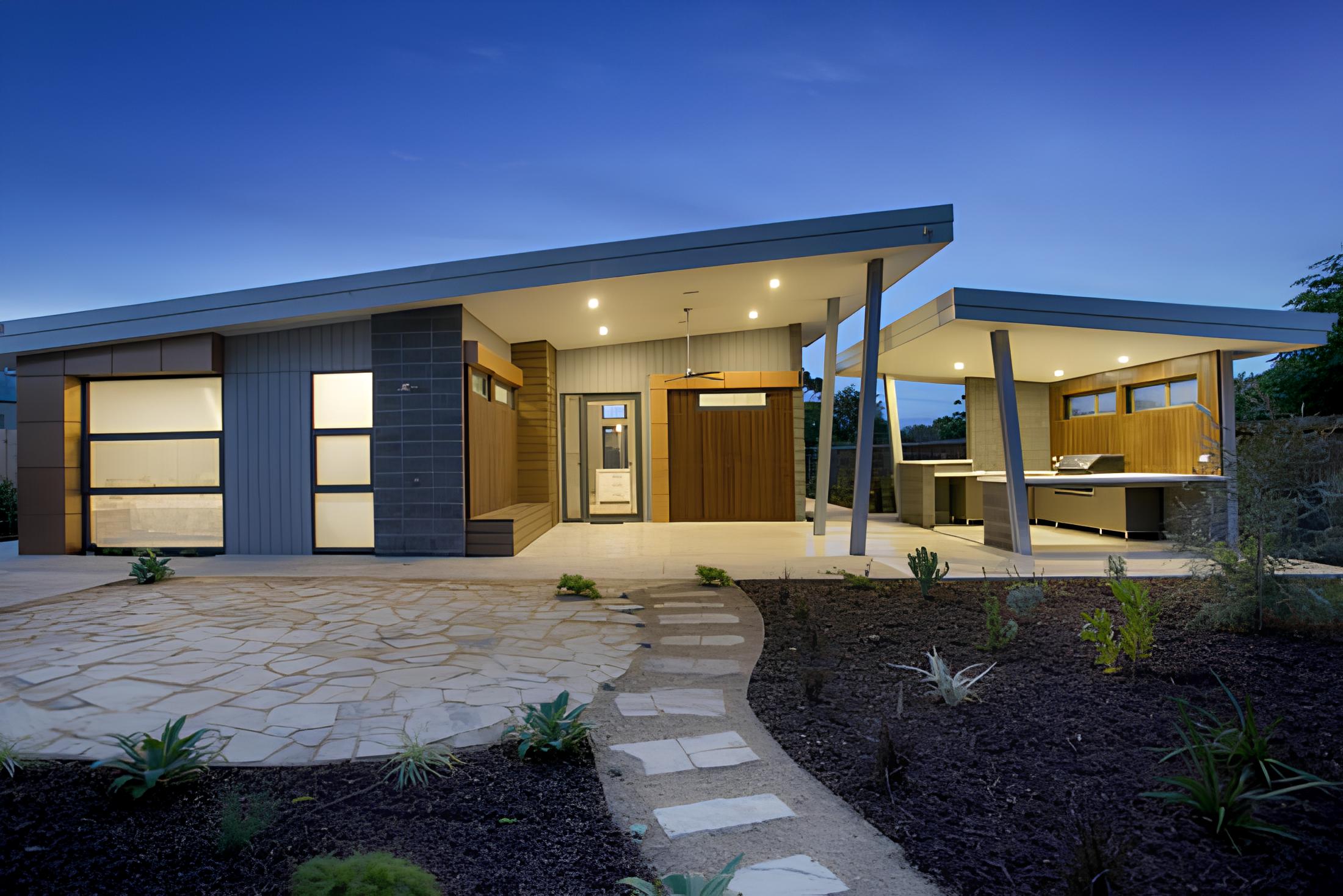 This award-winning home showcases amazing skillion roofs. The exceptional angles and materials have helped created the perfect holiday home in Mt Martha. This little gem has a separate BBQ area that has completed the home nicely.